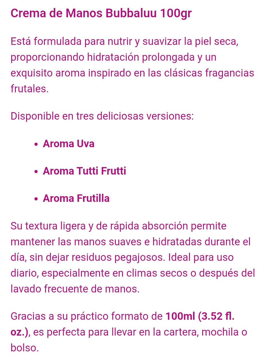 Crema de Mano Bubbaluu 100ml FRUTILLA 🍓
